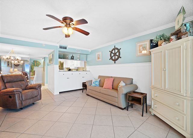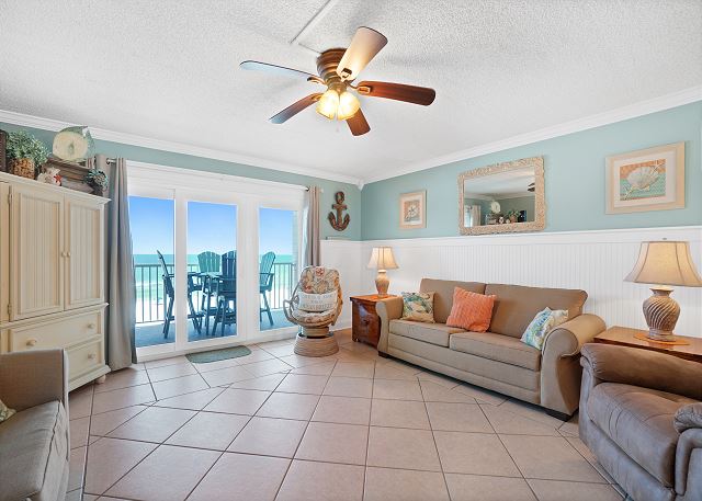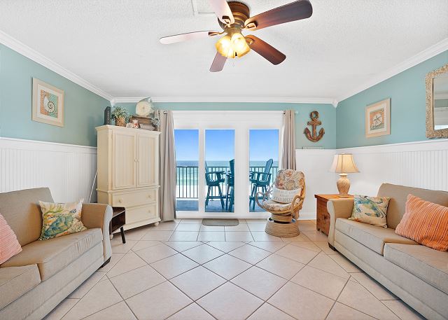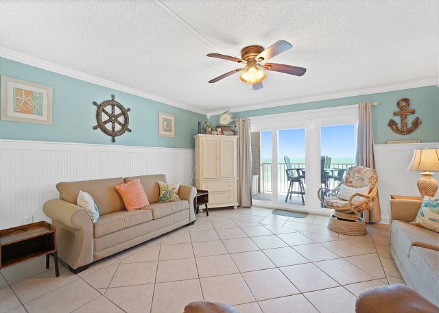 Mariner West is a family friendly low rise gulf front condominium on the east side of Panama City Beach. FL. Our large spacious gulf front one bedroom unit with two full baths sleeps up to 6 guests comfortably. This beautiful unit offers a fully furnished kitchen, cable TV with HBO and high speed internet. In addition there is a separate laundry room to store all of your beach gear. You have a front row seat on your large private balcony to greet the sunrise and watch the stunning sunsets.
